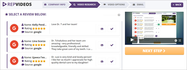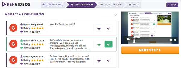 Review the feedback that we collected for that particular business and choose the best review for the video creation.