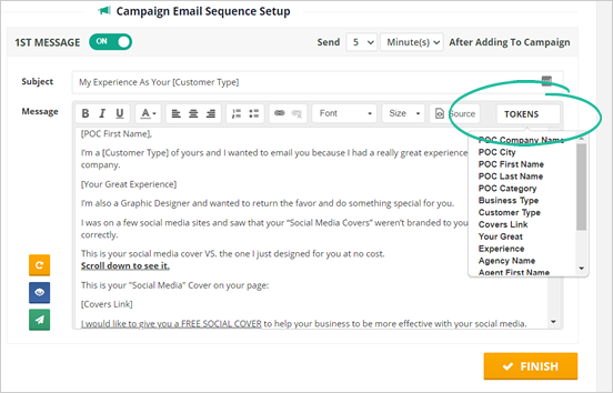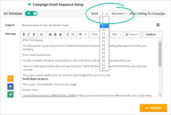 Once you are done updating your emails and are ready to send these emails to your leads, click Finish.