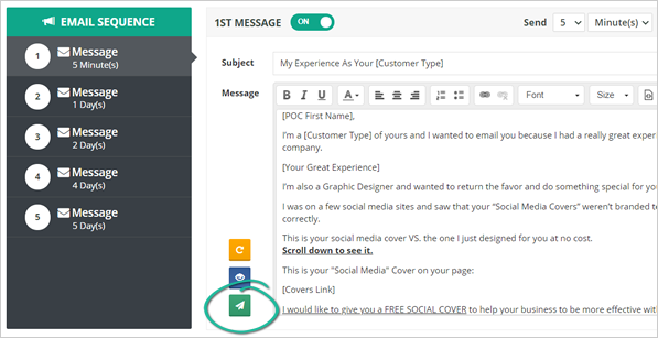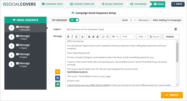Your email sequence will be completed in this last step of the wizard. You will be able to review your email and customize it to your preferences.