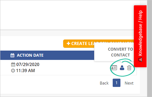 Click the Convert to Contact icon if you want to save the lead into one of your contacts.