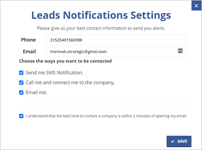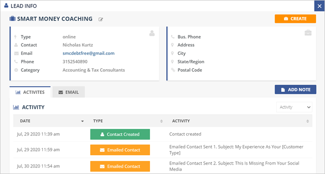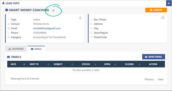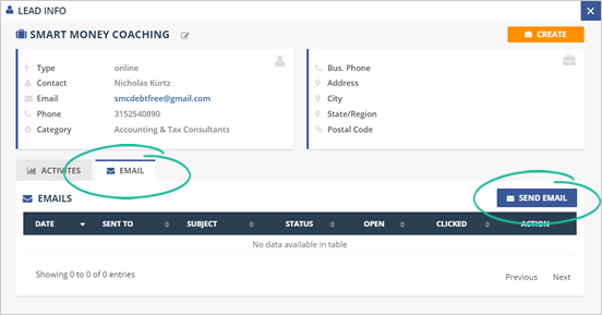 Once you are done reviewing the business’s activity, you can email the lead directly by clicking the Send Email button.