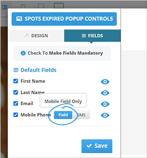 Select Field if you are asking for the viewer's Phone Number. Select SMS if you want to send them a text message and, at the same time, ask their permission to send them a text message. You can change the default option text here if you want to use your own.