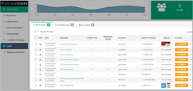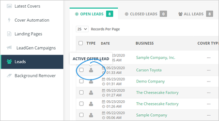 You have two types of leads, which are viewable from the Leads tab in the sidebar or in the Latest Leads box on your Social Covers Dashboard: