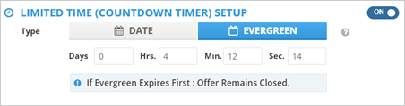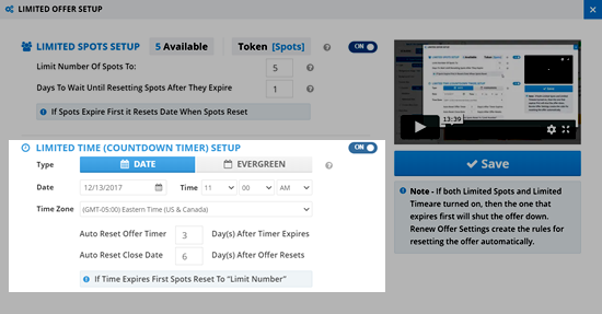 The second one is the Limited Time Setup. This section lets you create a Countdown Timer, and when that timer expires, your entire offer is gone.