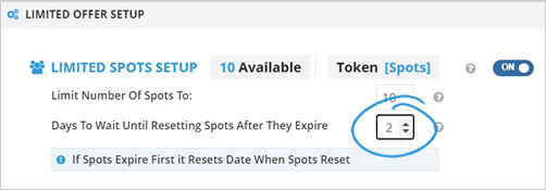 2. This next feature is the Days To Wait Until Resetting Spots After They Expire.