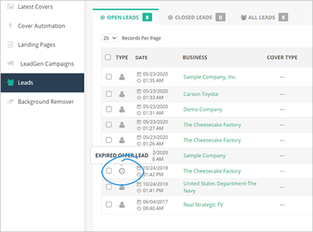 In this example, we are showing our Social Cover system. This example is also applicable to anything Limited Spots has, whether it is Local Analyzer, Ad Kahuna, or any other software. The leads below will help you determine which leads came in when the offer is still open and those leads that went in and listed because the offer is already expired.