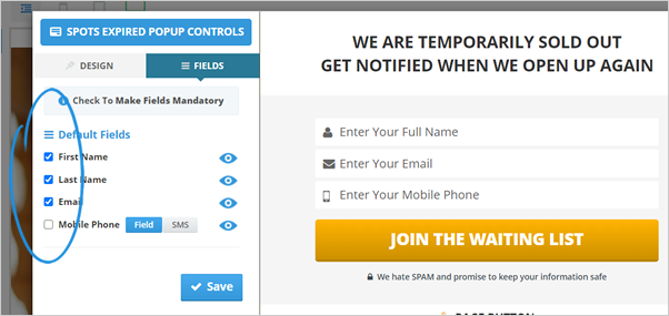 Tick the fields you want to be mandatory, and click if you want to disable a field. Once you are all set, click Save.