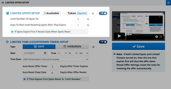 So that means if we set the expiration date from 48 hours from now, then 48 hours from now, the Limited Countdown Timer resets too, and it also Auto Resets. On Monday, we put the offer out, and all ten spots got taken up on Monday, which means that on Thursday, the offer comes back online and then sets the timer for 24 hours from when it came back online.