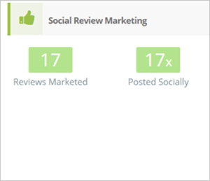 The Social Review Marketing displays the total Reviews Marketed and the total Social Post to which are marketed out to our Social Networks.