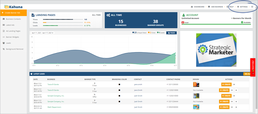 Step 1. From the main dashboard, click Settings.