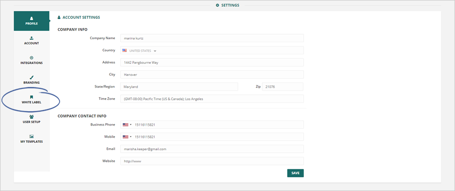 Step 2. Navigate to White Label.