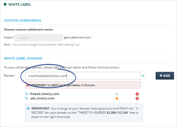 Complete the following steps to quickly add your White Label domain: