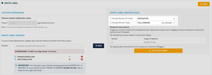 Step 5. Type in your white label domain.