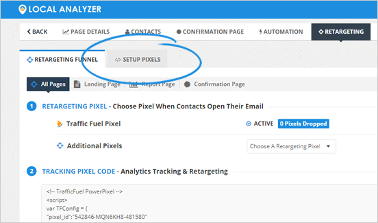 4. Click the Setup Pixels tab.