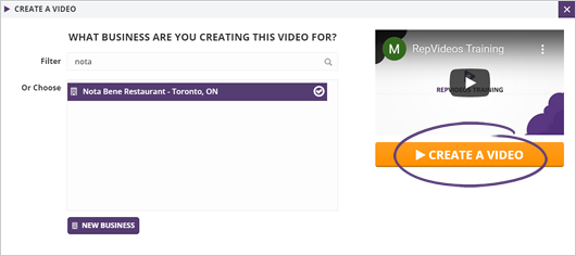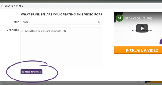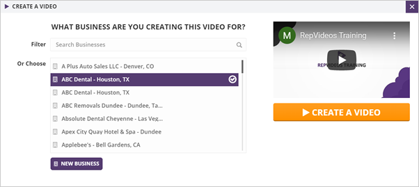 This article demonstrates how you can select a business for your video creation in Rep Videos