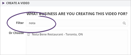 Step 1. Select the business that you want to have the video created for. You will find the businesses in the drop-down.