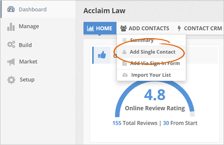 Step 1. From the merchant’s dashboard, hover your mouse over the Add Contacts tab and select Add Single Contact.