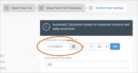 You may also set the drip rate (optional) of your email. A drip rate is the number of emails that will be going out daily during the campaign.