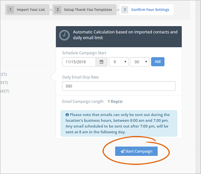 Step 9. Once everything is set up, click the Start Campaign button to automatically send out Thank Emails whenever your client or customer leaves positive feedback.