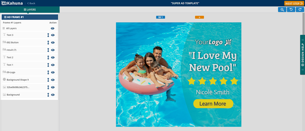Once you select your Banner Ad template and size, you will be redirected to this page. This page allows you to customize each section of your Ad fully. Create Branding that will identify your company and, most importantly, the features you offer to your customers.