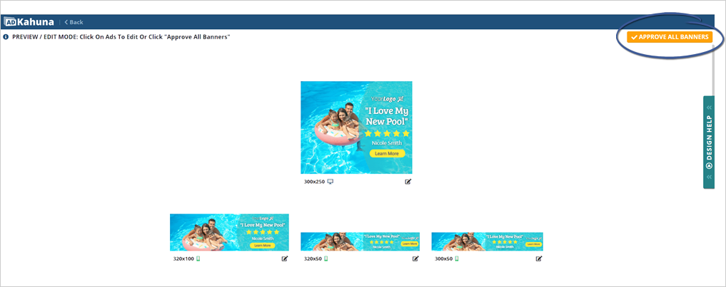 Step 3. Review your banners then click the Approve All Banners button to finalize your banner set.
