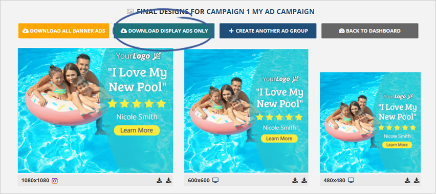 Step 5. To download the display ads only, click the Download Display Ads Only button.