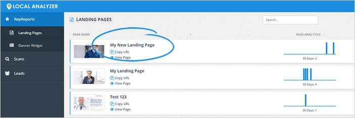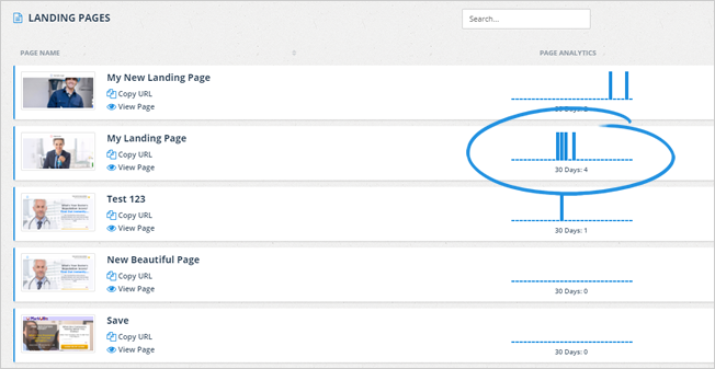 2. See the number of views for each Landing Page by looking at the bar graphs.