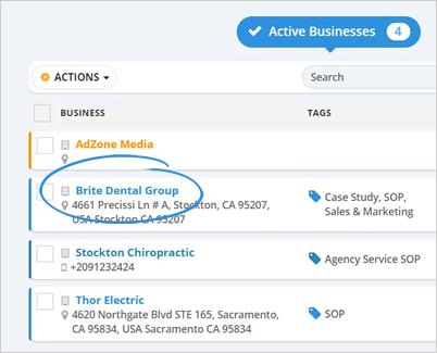 Step 2. Select the business name from the active list of businesses that you want to update.