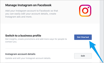 If you have dismissed the popup window, click Get Started to the right of "Switch to a business profile" and then follow the on-screen instructions.
