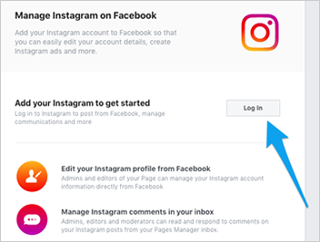 Step 7. Once you have disconnected the Instagram account (or if there wasn't one already connected), click Log In towards the top of the screen.