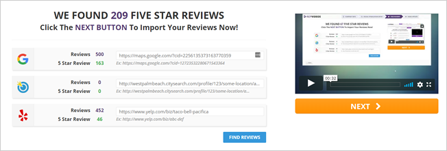 As part of the initial setup for adding a new company to Review Videos, our software guides you through the process of collecting online buyer reviews from around the web.