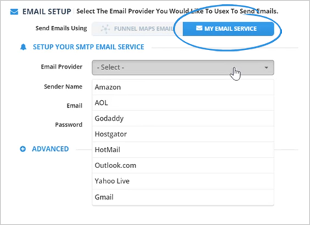 Step 4. To use your branded email, click the My Email Service tab and select your email provider from the Email Provider drop-down menu.