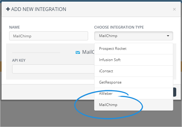 4. Select MailChimp from the drop-down.