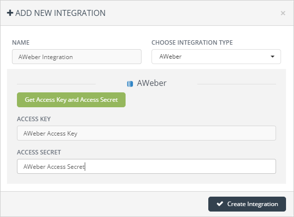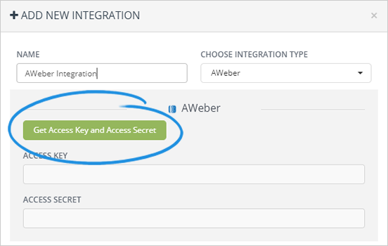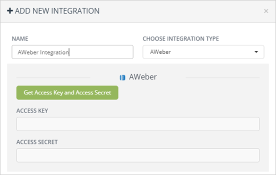 8. Paste your Access Key and Access Secret for AWeber.