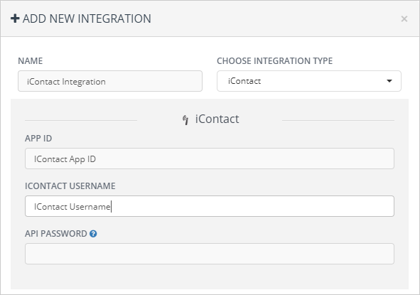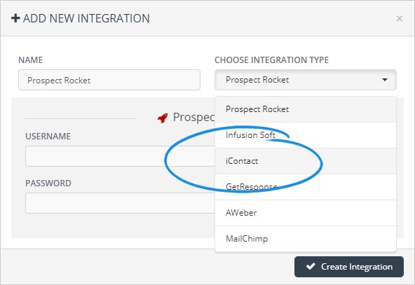4. Select iContact from the drop-down.