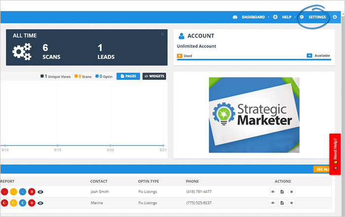 1. From the main dashboard, click Settings.