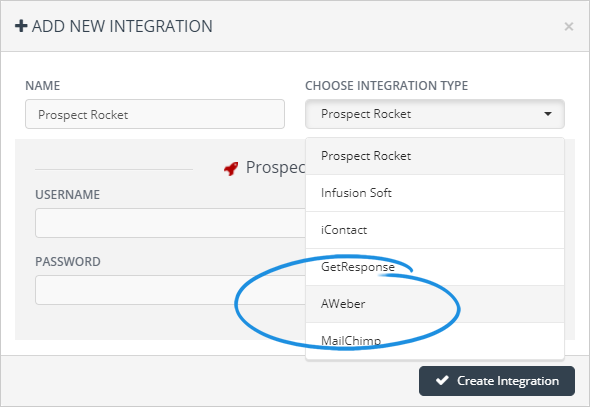 4. Select AWeber from the drop-down.