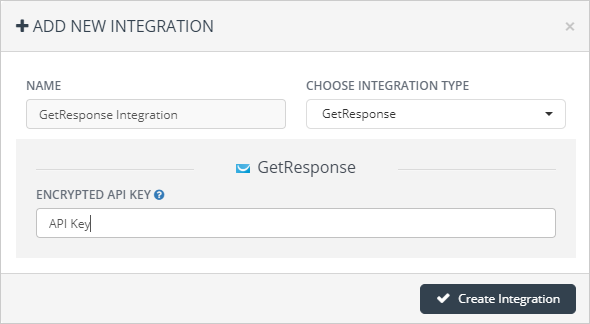 6. Paste your encrypted API Key for GetResponse.