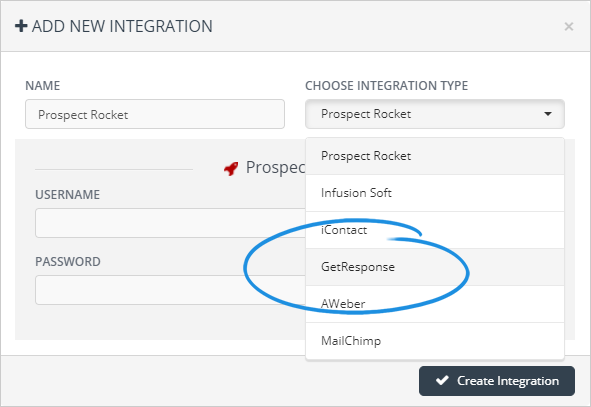 4. Select GetResponse from the drop-down.