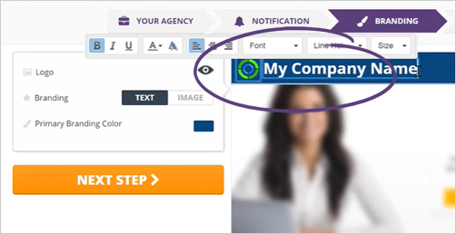 Step 7. To change your branding text, click on the element and type in your new branding text.
