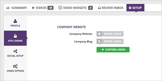The Site Login Setup lets you set up the login details for the company website and blog. You can store Custom Login as well.