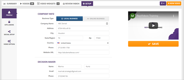 On the Profile Setup page of the business, you will be able to review the settings that you created when you set up the company in the first place.