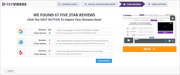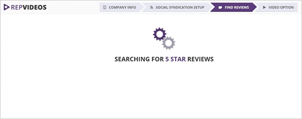 On this step, we will look for reviews for that business that you are setting up. You will be able to use those 5-star reviews in your video creation. Please give it a couple of minutes, and we will pull up all the reviews that we could find online.