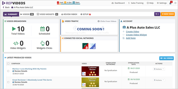 Once you have produced your Rep Videos, you will see them listed in this area.