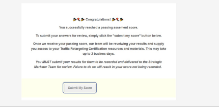 If you score a 90% or above, you will have successfully completed the Retargeting Certification Assessment.