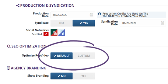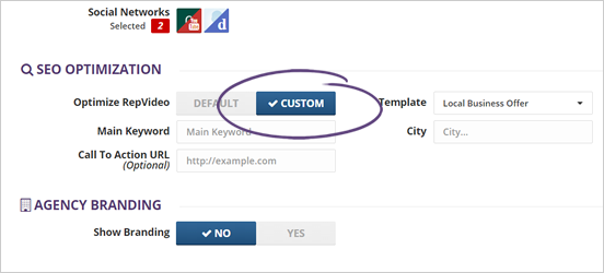 Step 12. Choosing a Custom SEO Optimization lets you override the Main Keyword, select the City, and change the Call to Action URL specific to that video.