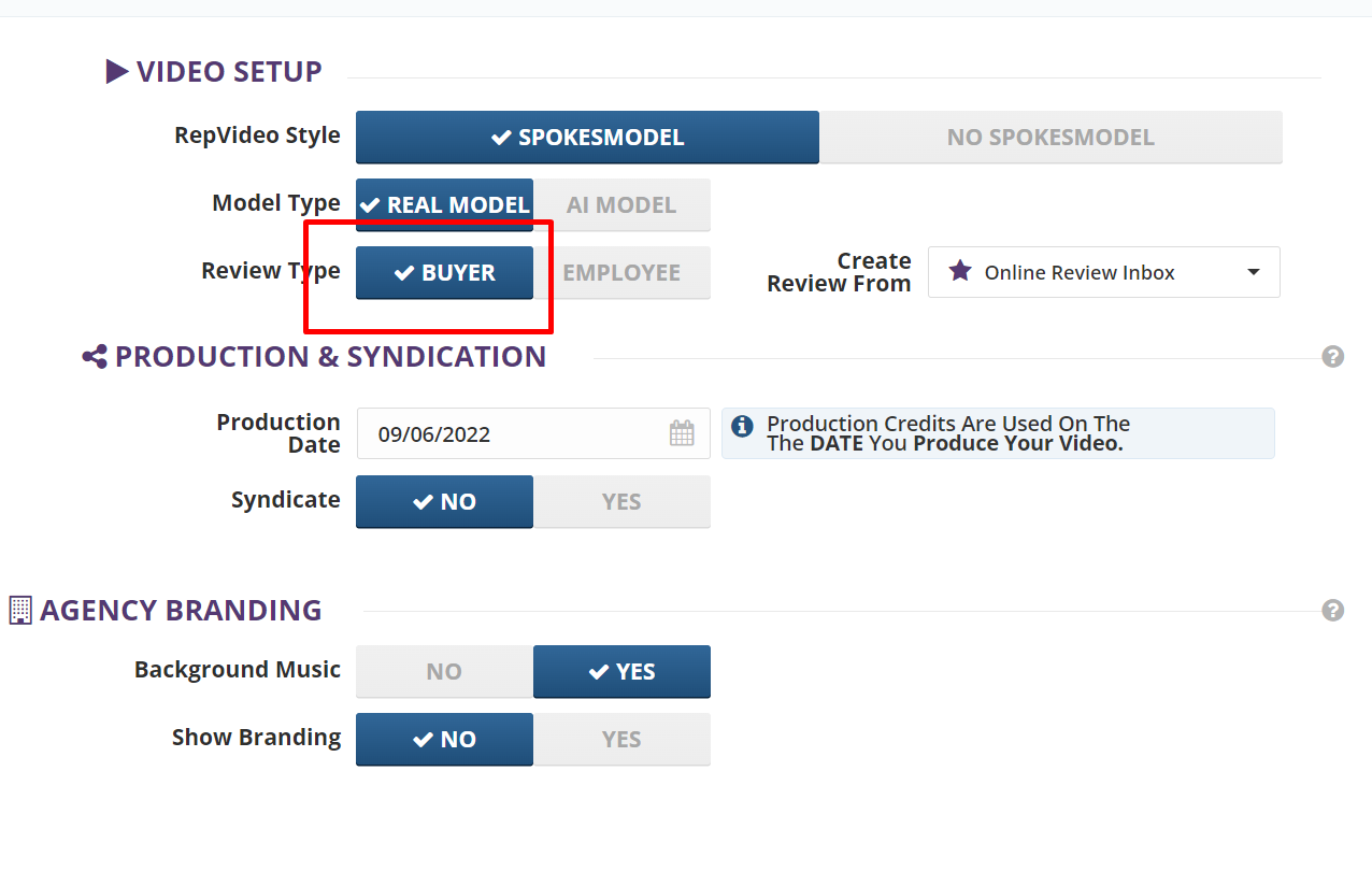 Step 2. Decide if you want to use a Buyer Review or an Employee Review.