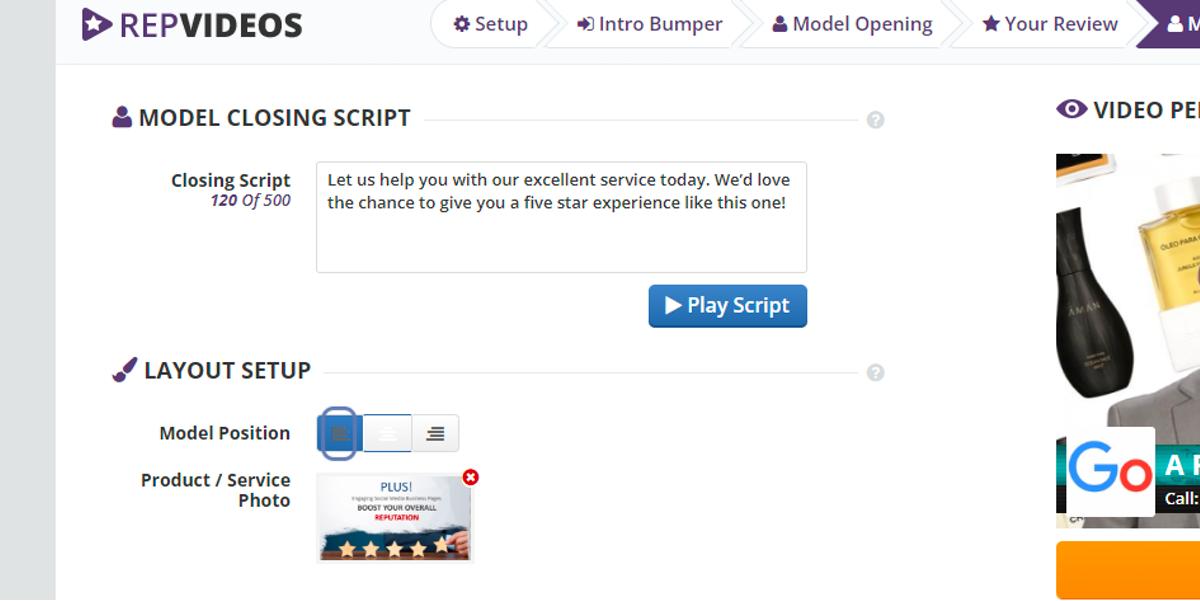 Update the closing script then preview by clicking Play Script.