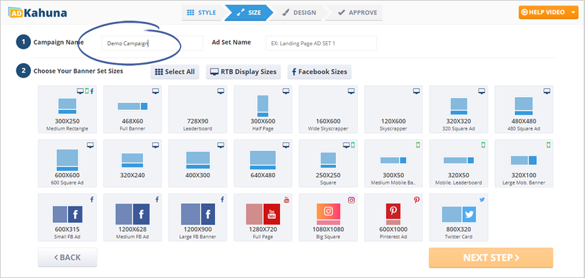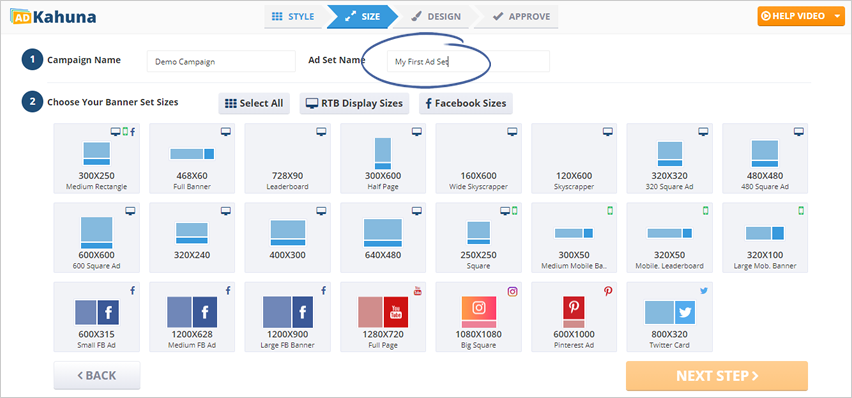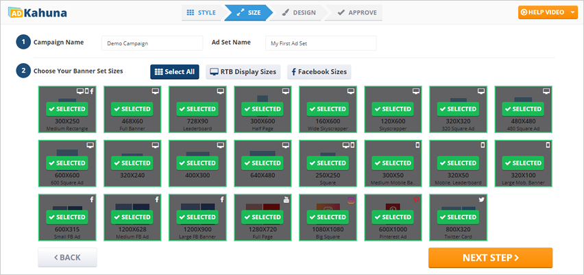Step 8. Select the sizes that you need. If you need all the Banner sizes, click Select All.