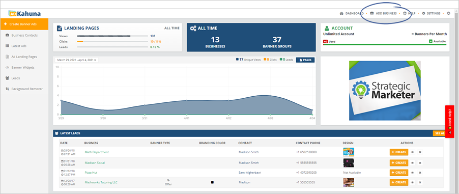 You can easily create multiple client records using Ad Kahuna. With autofill, type the new merchant's name and add other details, such as their Business Address, Website URL (Uniform Resource Locator), and Contact Number.
